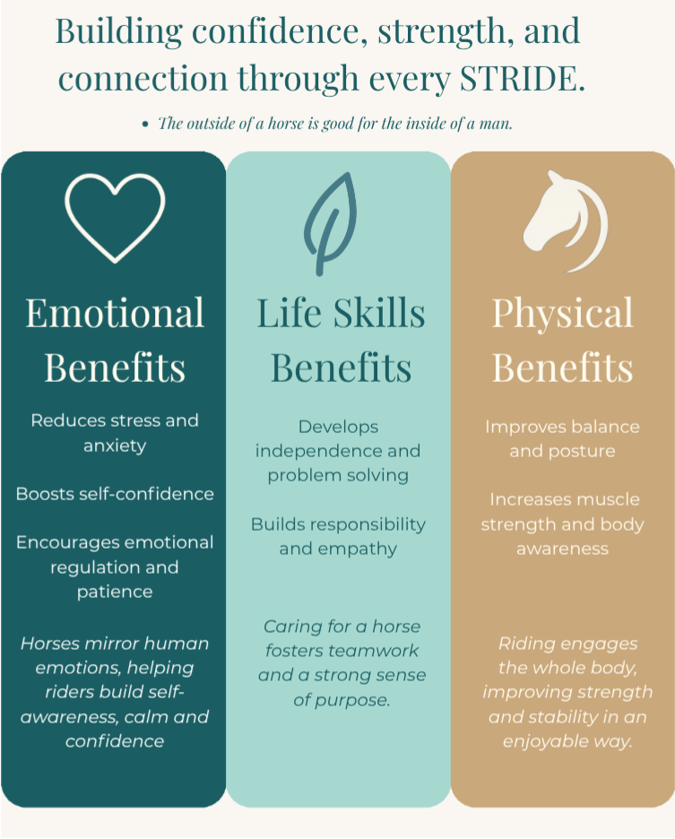 “Our mission is to provide high-quality equine activities to people with disabilities, foster children and at-risk youth. Through inclusive education and meaningful connections with horses, we strive to foster personal growth, build confidence, and strengthen our community.”